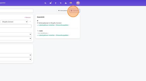 - Configureer je verzendregel – Stel de voorwaarden in die bepalen wanneer deze regel moet worden toegepast, zoals de bestemming van de order, vervoerder, pakkettype of andere criteria.