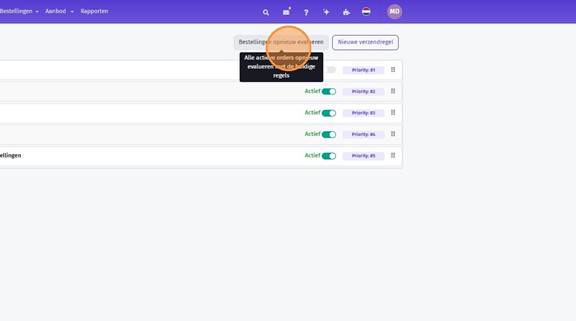 - Click "Bestellingen opnieuw evalueren" De nieuwe regel(s) worden toegepast op je bestaande orders, zodat automatisch de juiste labels en worden toegewezen.
