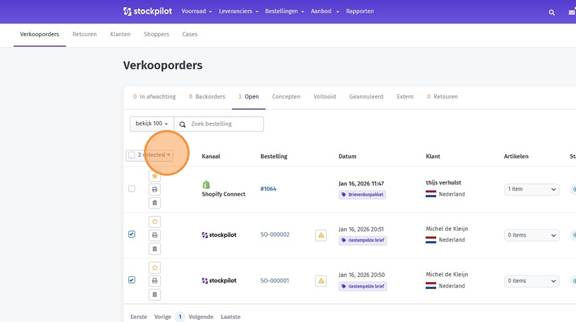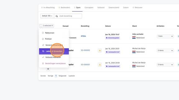 - Selecteer je bestelling(en) of alle openstaande op de pagina.