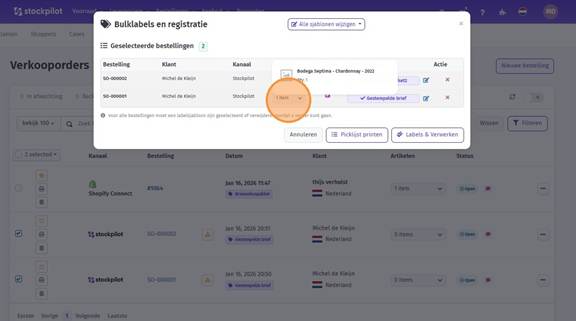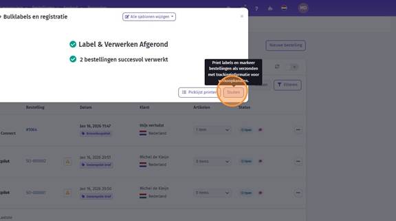 - Sluit de bevestiging. De labels zijn aangemaakt en de bestellingen zijn afgerond in de verkoopkanalen.